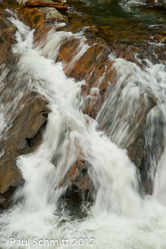 Waterfalls were usually our early morning subjects, especially if it were to become sunny later. Along the Little River is one large drop called the Sinks. The inclined plates of colorful rock present many interesting compositions such as this: