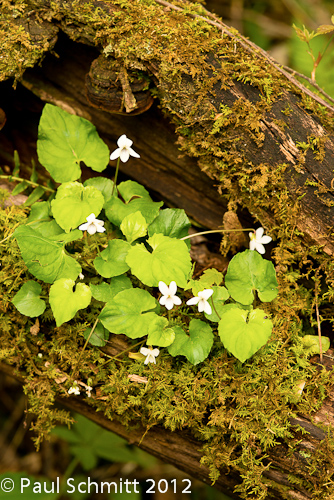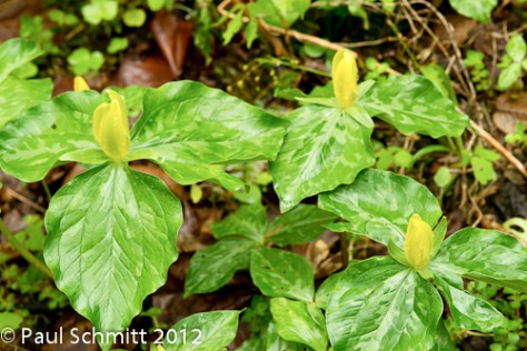 Trillium luteum In addition to adding over a half dozen new wildflowers to my photo gallery, we also came upon numerous attractive settings for familiar plants such as this white violet growing in the hollow of a fallen log.