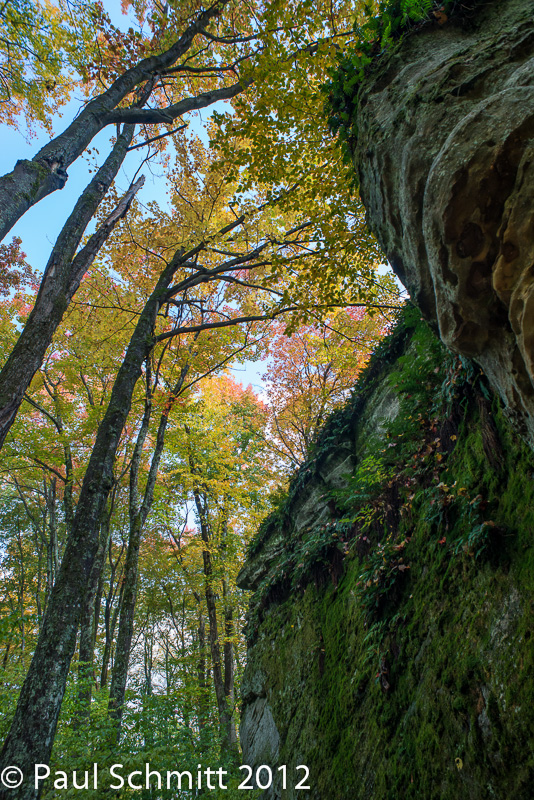 I decided to go to Rock City in autumn hoping for some brilliant reds. Some of the trees were maples, but it seemed the ones with red leaves lost their leaves early. Still, there are so many dramatically shaped trees, seemingly contorted by the struggle to compete with the large monoliths of rock, that I found interesting images.