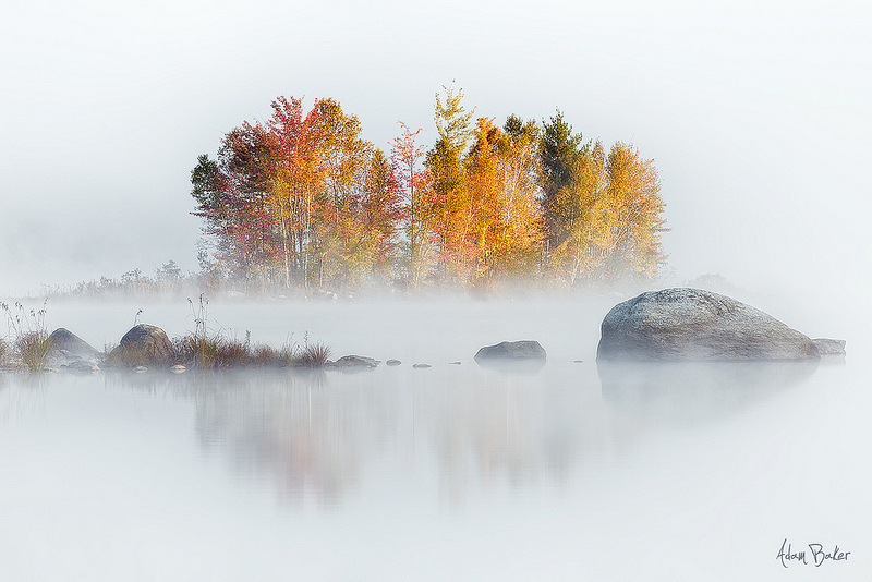 I captured less of the warm glow from my position to Ray’s right but found a pool of water that mirrored the creamy waterfall. I also chose a different aspect ratio with less foreground.