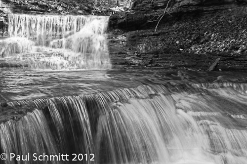 The next meeting of the Cayuga Nature Photographers is to present black and white  images made by the members.  It has always seemed to me that waterfalls are one of the best subjects for that. So, I processed the  above image in Photoshop using the RGB channels. (I will likely be on travel and miss the  next meeting, so this is my contribution.)